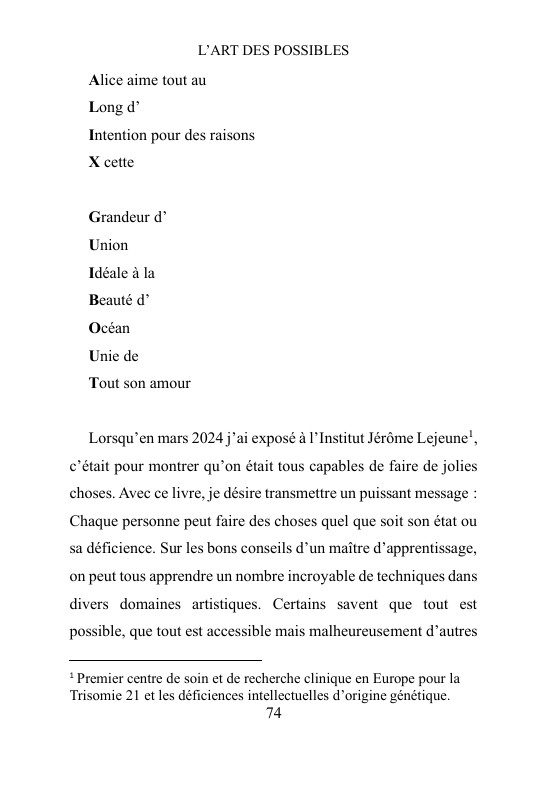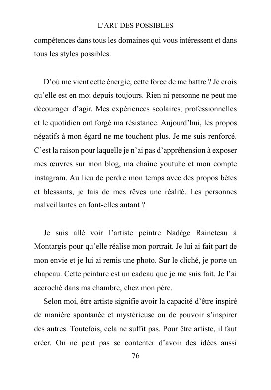 « L’art des possibles » est le fruit de ma collaboration avec l’artiste David Barbazange. Un témoignage puissant et émouvant sur la capacité d’un homme à ne pas s’avouer vaincu par les défis de la vie. Tel le personnage de bande dessinée Tintin, son alter ego imaginaire, il prend un malin plaisir à surmonter chaque obstacle posé sur son chemin. Les difficultés deviennent des opportunités, celles d’apprendre et d’évoluer.